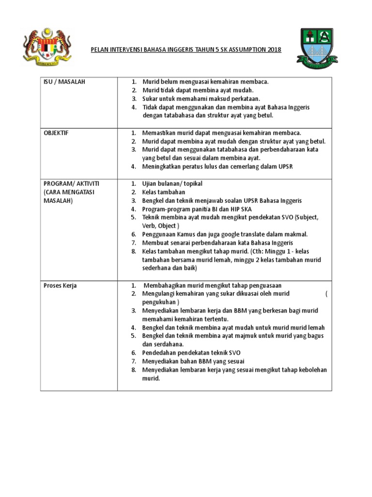 Pelan Intervensi Panitia Matematik 2019 Pdf